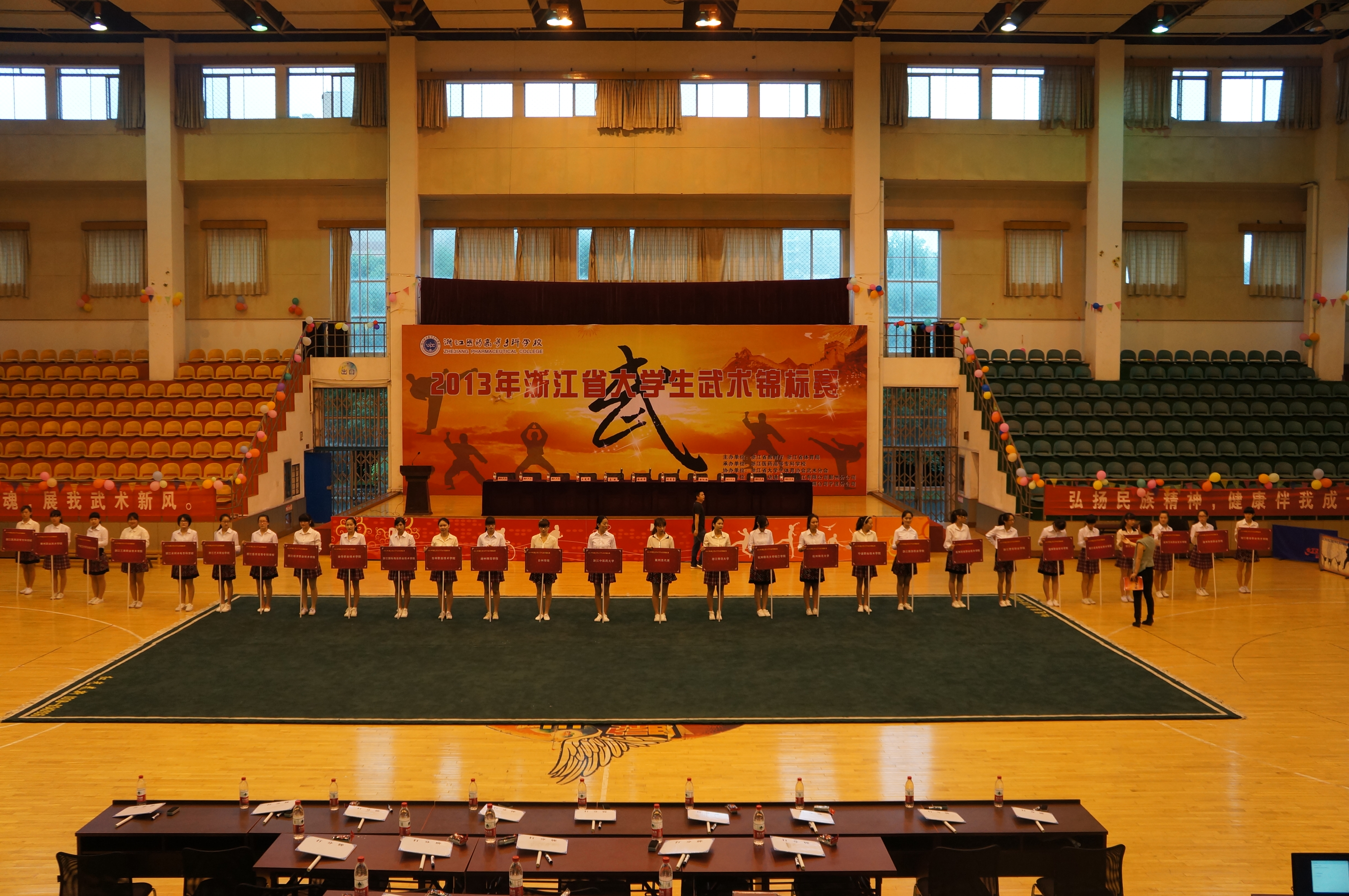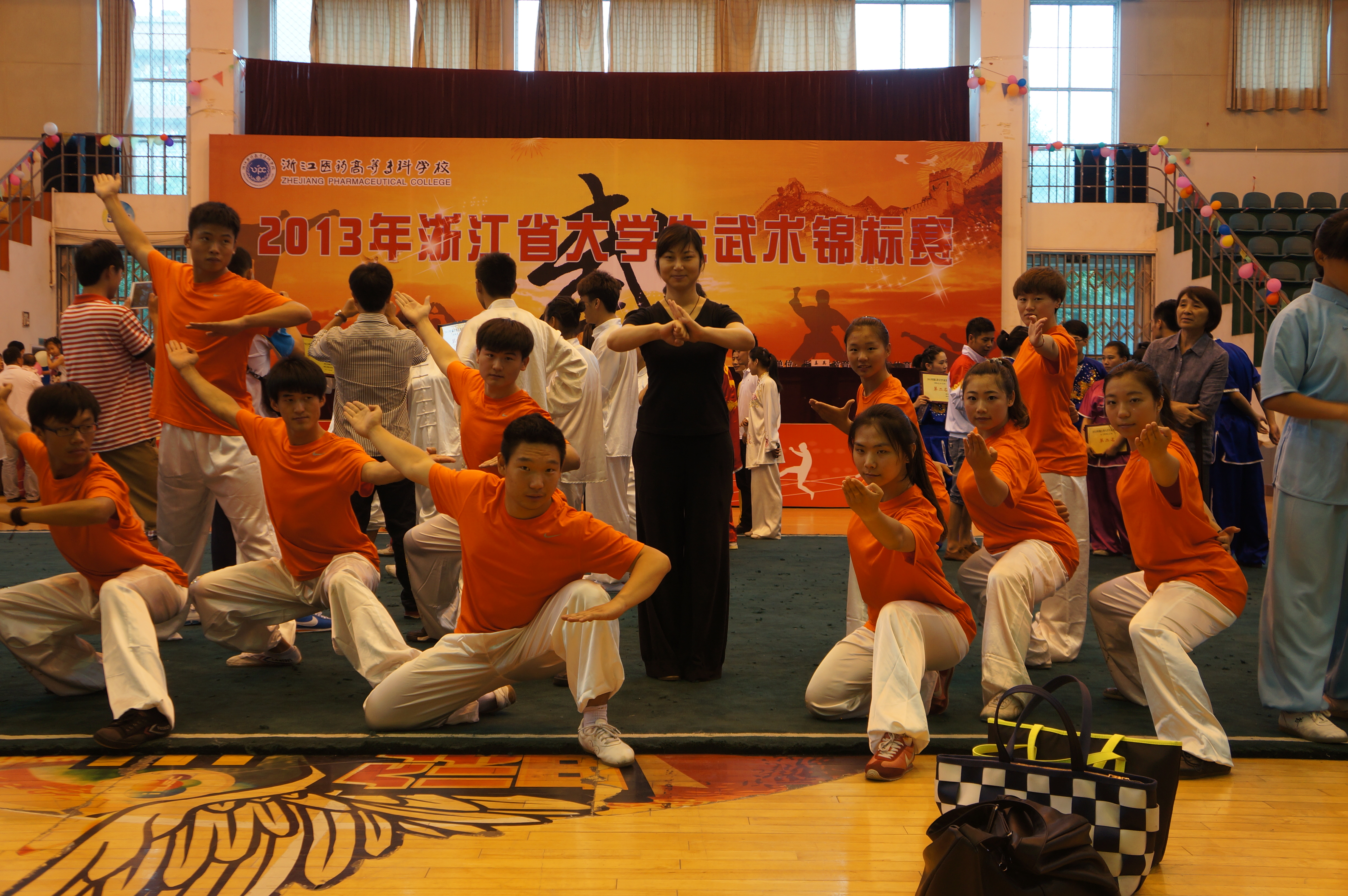 我校武术队在2013年浙江省大学生武术套路锦标赛中,在教练员王晓燕、高媛老师的带领下,运动员们勇于拼搏,不惧对手,获得甲组男子长拳冠军、男子42式太极拳冠军、男子剑术亚军、女子棍术季军,高媛老师获得优秀教练员称号。丙组勇夺3枚金牌、6枚银牌、5枚铜牌,同时获得团体总分亚军的好成绩。