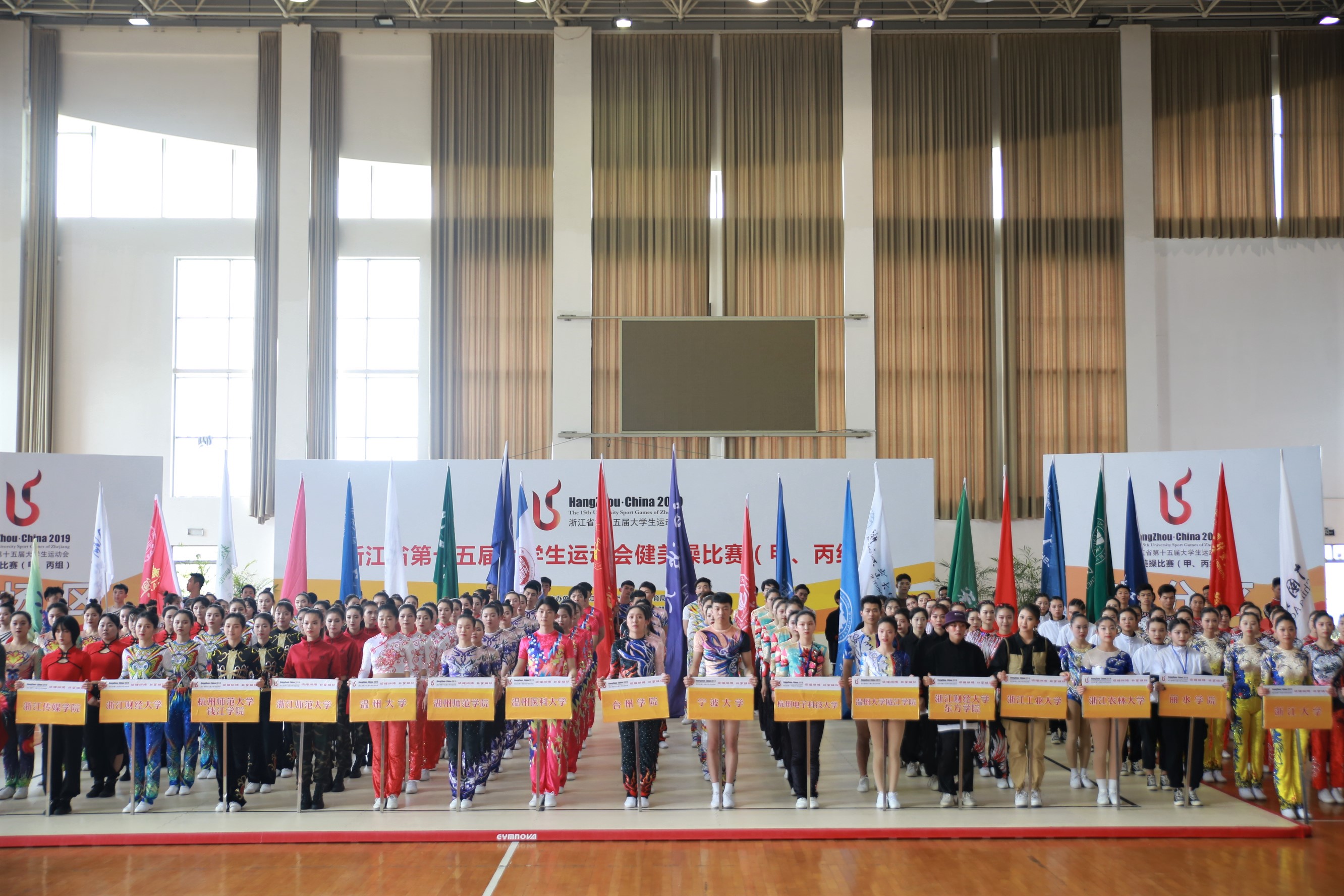 4月19日,浙江省第十五届大学生运动会健美操比赛(甲、丙组)在我校下沙校区开幕。共有来自全省各地28个院校32支代表队的471名运动员参加比赛。