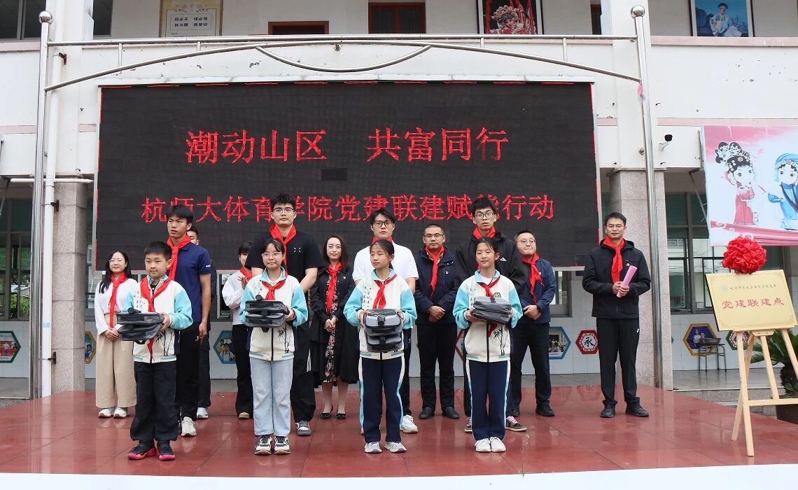 杭师大体育学院优秀学生党员作为代表,向新宅小学捐赠了一批专业运动装备。这份承载高校关怀的“体育礼包”,不仅为山区孩子送去温暖,更寄托着对体育教育均衡发展的深切期望。
