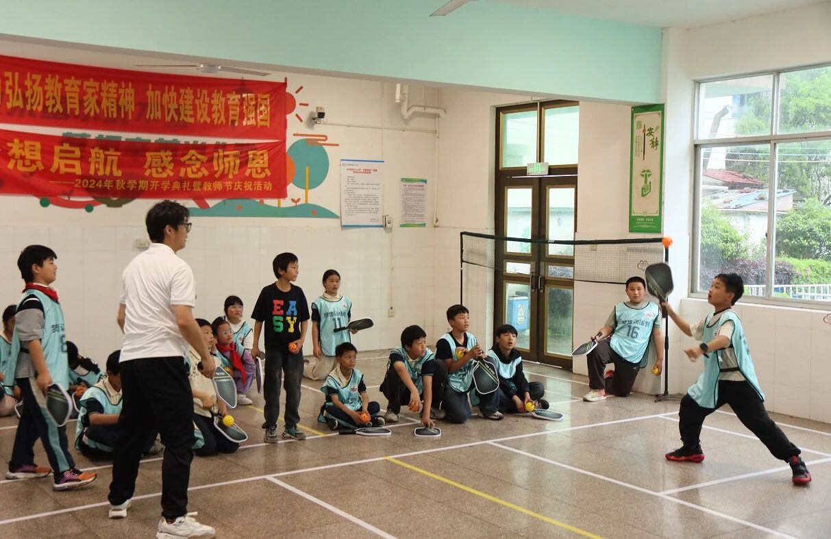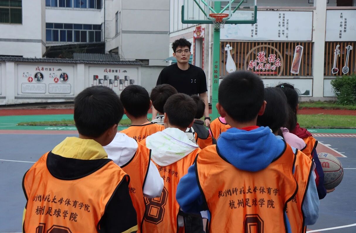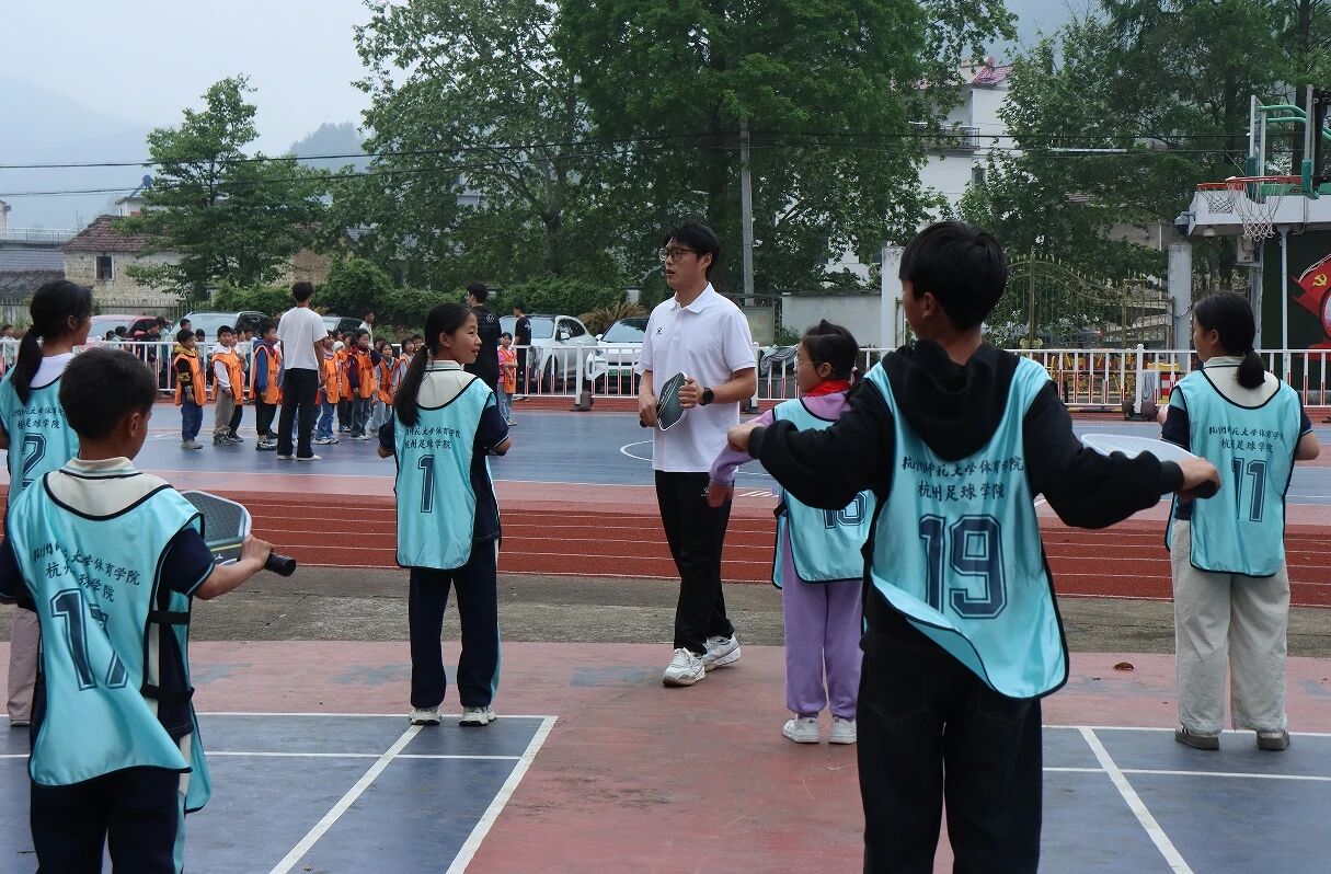 在杭师大体育学院与新宅镇中心小学的教育交流活动中,体育学院优秀学生代表——吕晓庆、崔赵旺、谢锦标、黄于特以及赖昱辰,为孩子们带来了一场别开生面的体育分级教学课程:三年级练篮球协作、四年级踢足球、五年级尝试匹克球、六年级挑战田径。