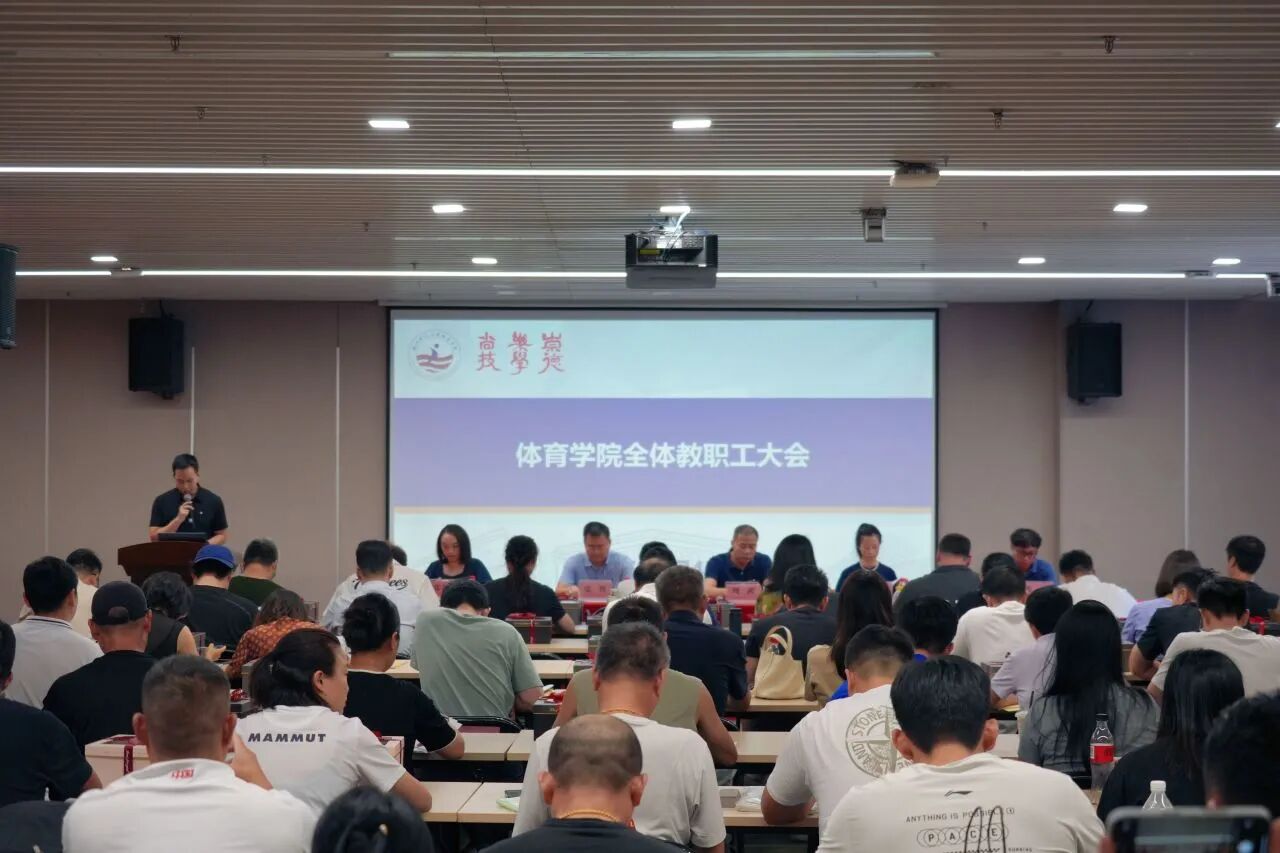 9月4日,杭州师范大学体育学院召开新学期全体教职工大会。学院领导班子及全体教职工参会。