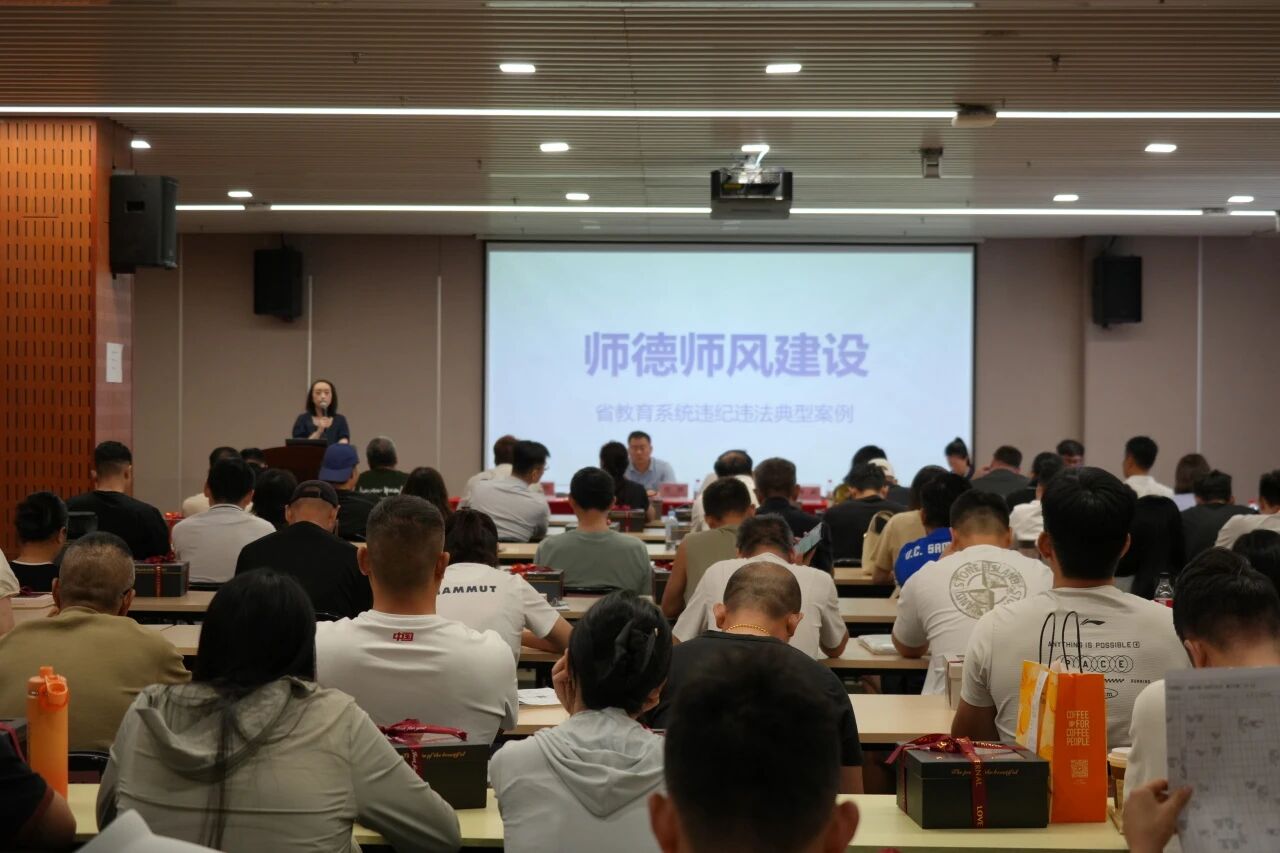 纪委书记张金玲就意识形态领域相关工作进行了强调,并结合教育领域热点问题与省教育系统违纪违法典型案例,对全院教师开展师德师风警示教育。她通过举例个别高校教师违反师德师风规定事件,强调教师需兼具扎实专业知识、过硬教学技能与高度师德自觉,坚决杜绝师德失范行为,引发教职工对自身师德修养的深刻反思。