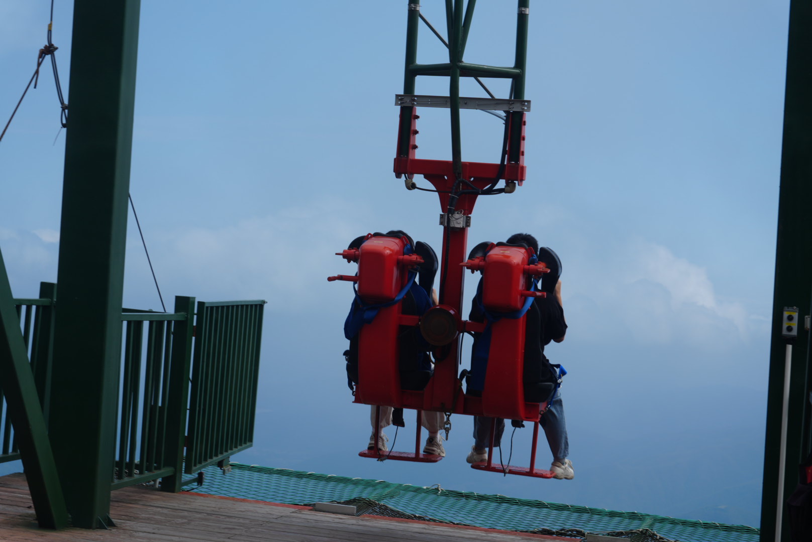 坐景交车上山,乘缆车穿云海,大家几乎“零体力消耗”就站上了山顶。经过短暂的修整,院旗一展开,快门按下,属于2025级研er的第一张集体合影就定格了这份热闹。
