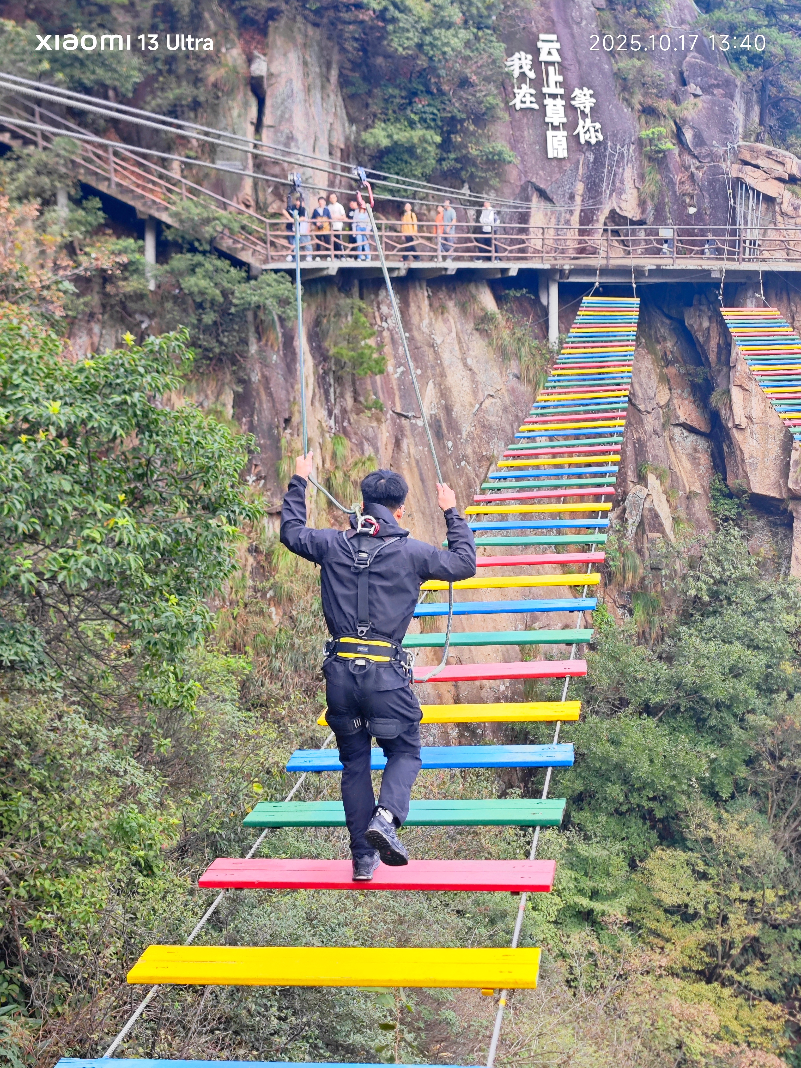 随后的自由探索时间,大家自动组队,朝着不同目标出发:有人扎进仙侠镇,沉浸式当起“江湖人”——NPC随机出现,答个知识题、完成小任务就能赚“银票”,兑换周边。还能在秋日限定场景里打卡,顺便坐个旋转木马、海盗船,找回童年快乐;也有人挑战悬崖心跳乐园,悬崖秋千荡向云端、飞拉达攀岩紧贴峭壁,风声里混着尖叫与欢呼,肾上腺素直接拉满。
