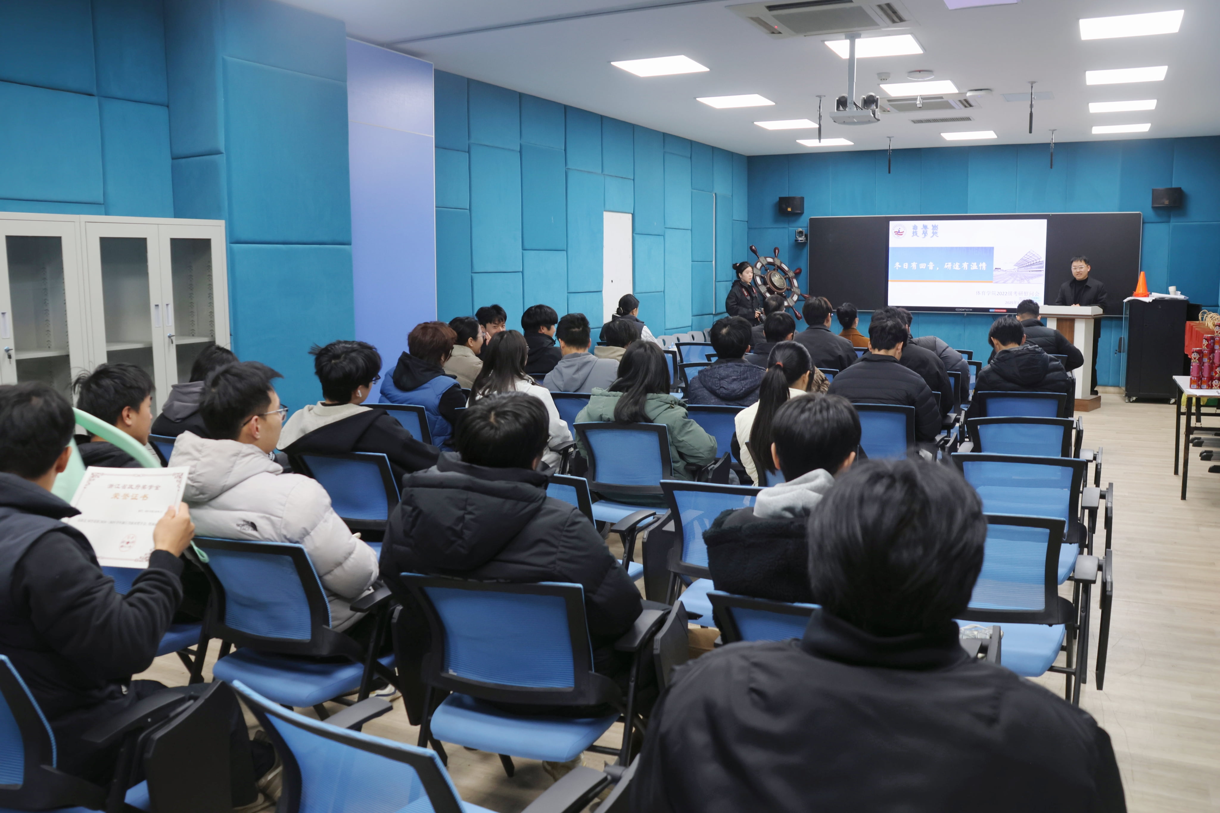 2025年12月10日,杭州师范大学体育学院于恕园40号楼203教室开展了“冬日有回音,研途有温情”考研慰问活动。在2026年全国硕士研究生招生考试(初试)临近之际,学院通过此次活动向正在紧张备考的学子表达了关切与鼓励,旨在缓解学生压力,增强应考信心。